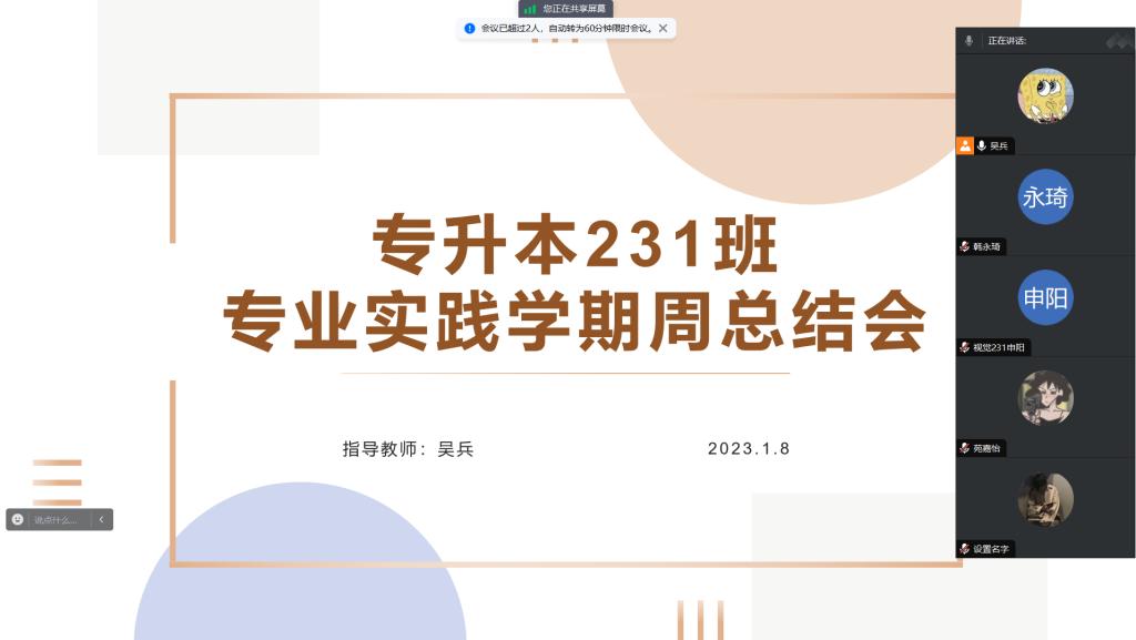 1月8日晚,视觉专升本231班召开专业实践学期第一周总结会,本次会议由指导教师吴兵主持。