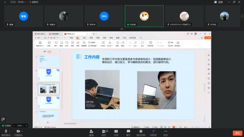 随后,学委张宇航纠正上传照片格式问题,并表扬本周同学们照片更加规范了;再次强调,要和指导教师视频通话汇报工作情况,并将截图上传到群在线文档重。