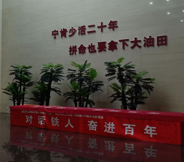在游览铁人纪念馆时,她被王进喜"奋不顾身压井喷"的图片所感动。唐朝诗人戴叔伦曾作诗:"愿得此身长报国,何须生入玉门关”。王进喜曾经发出“宁肯少活20年,拼命也要拿下大油田”的誓言,他把自己的一生毫无保留地献给了祖国的石油事业。