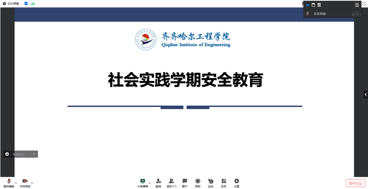 首先辅导员辛昊指出,在专业实践进行期间完成好工作是其中一方面,另一方面就是注意专业实践中的安全方面的问题,保证自己的人身安全为首要。上班期间出行要注意安全,饮食方面要以健康为主。擦亮眼睛防止被诈骗,注意网络安全。在工作中要切实的保障自己的安全和利益,如有任何问题要及时与辅导员进行沟通解决。