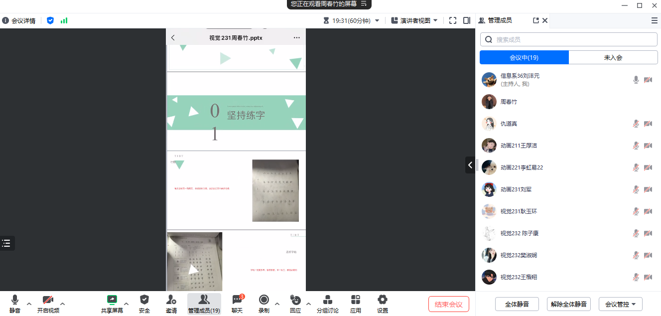 社会实践学期第一周总结会议于1月15日上午10点在腾讯会议举行,会议由动画专业刘沣元老师主持,共20名学生参加。