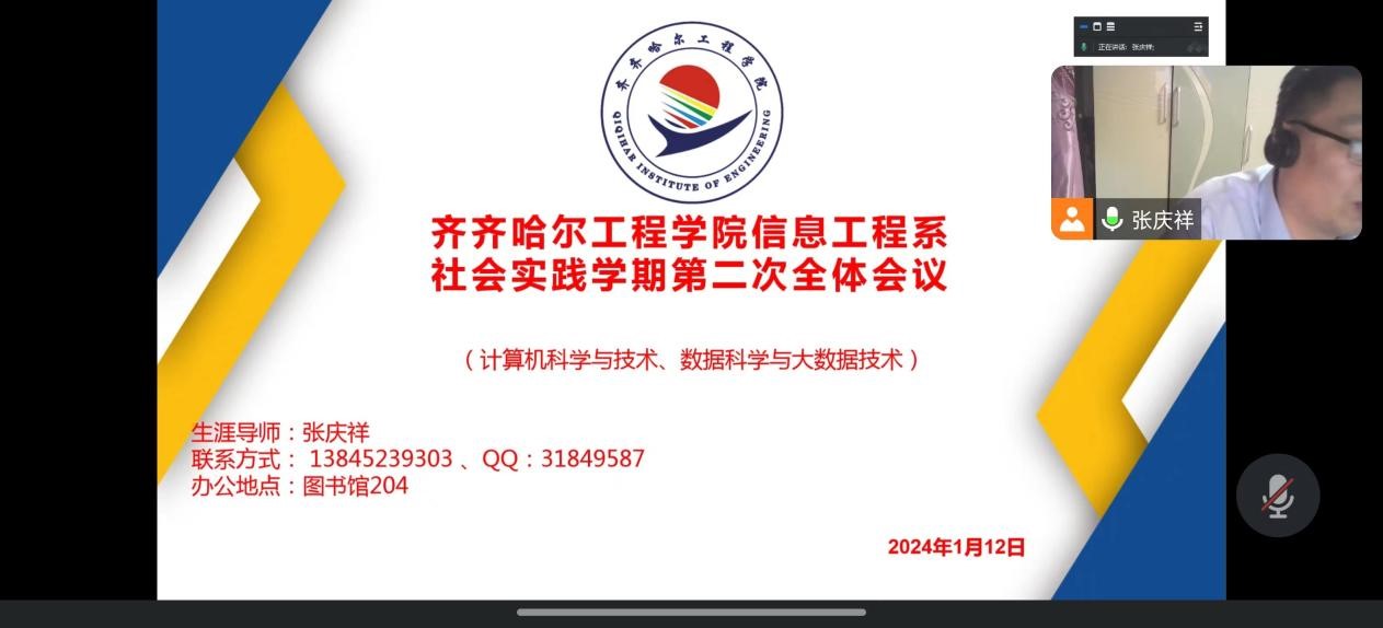 1月12日晚7点,信息工程系生涯导师张庆祥通过腾讯会议召开第四学期第二次全体会议。