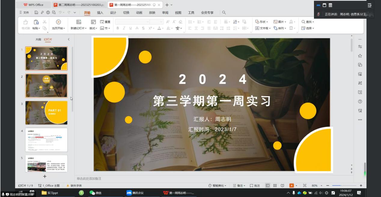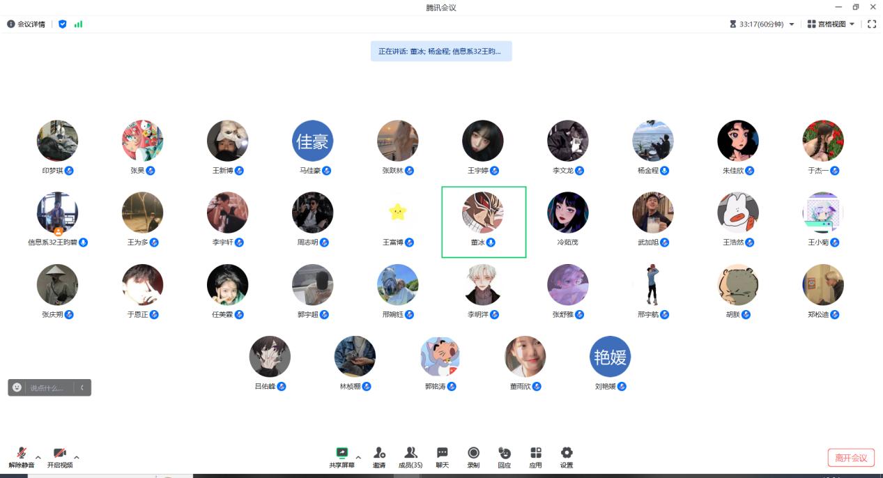 1月12日下午王昀碧老师在腾讯视频会议召开专业实践学期第二周的工作汇报,视觉专升本232班36人参加。