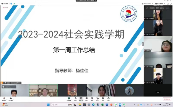1月13日19时,杨佳佳老师通过腾讯会议召开2023-2024社会实践学期安全教育及第一周工作总结会议,由杨佳佳老师主持,社会实践学期学生25人全员参加。