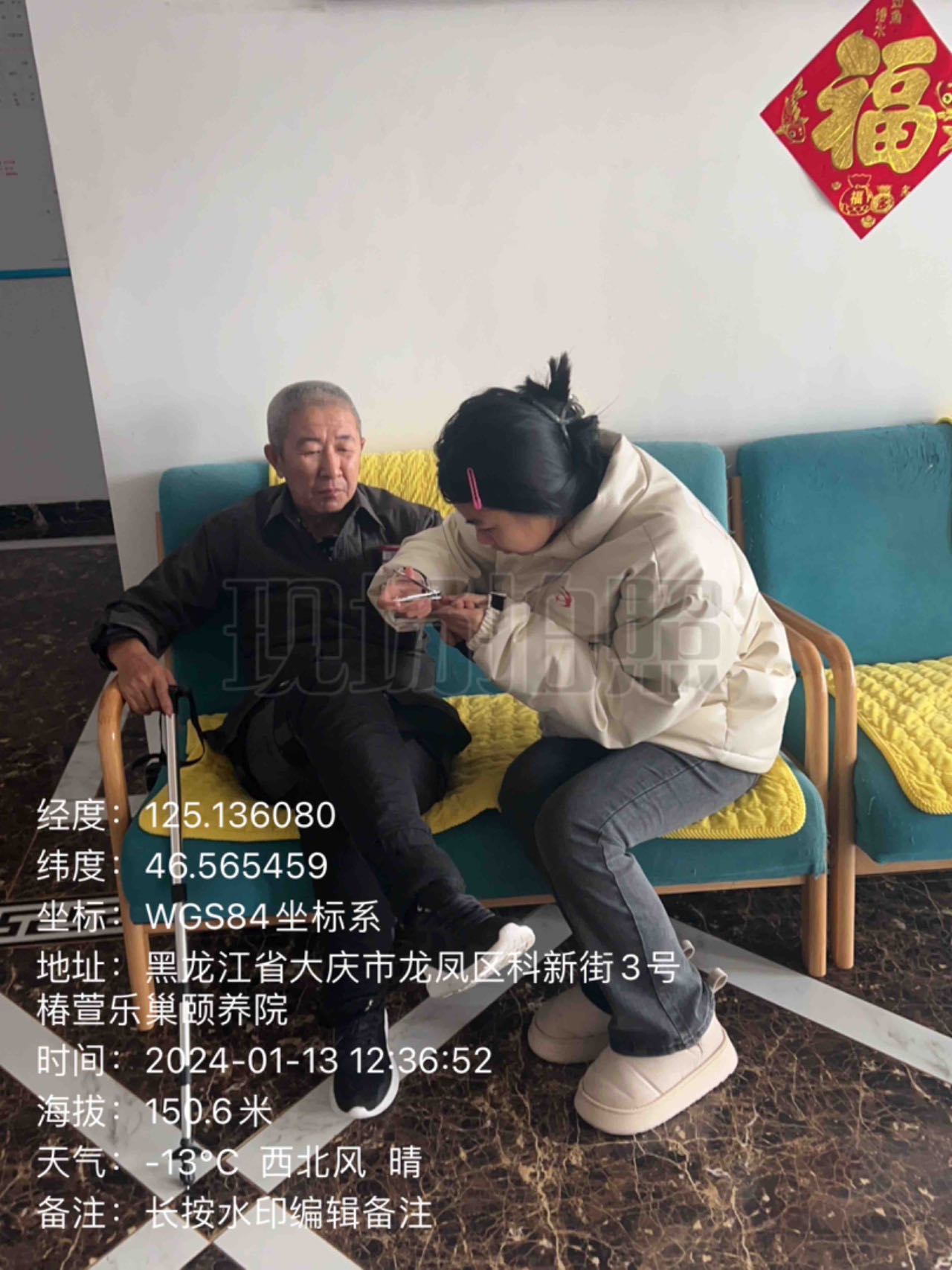1月13日下午,大数据232班张欣然来到大庆椿萱乐巢颐养院开展共青团“青春暖流·志愿服务献爱心”活动。