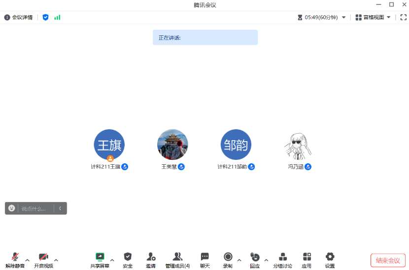 1月11日,通过腾讯会议我们开展了一场读书交流分享活动,本次交流分享让我们四人共聚一堂,分享了自己的读书心得。