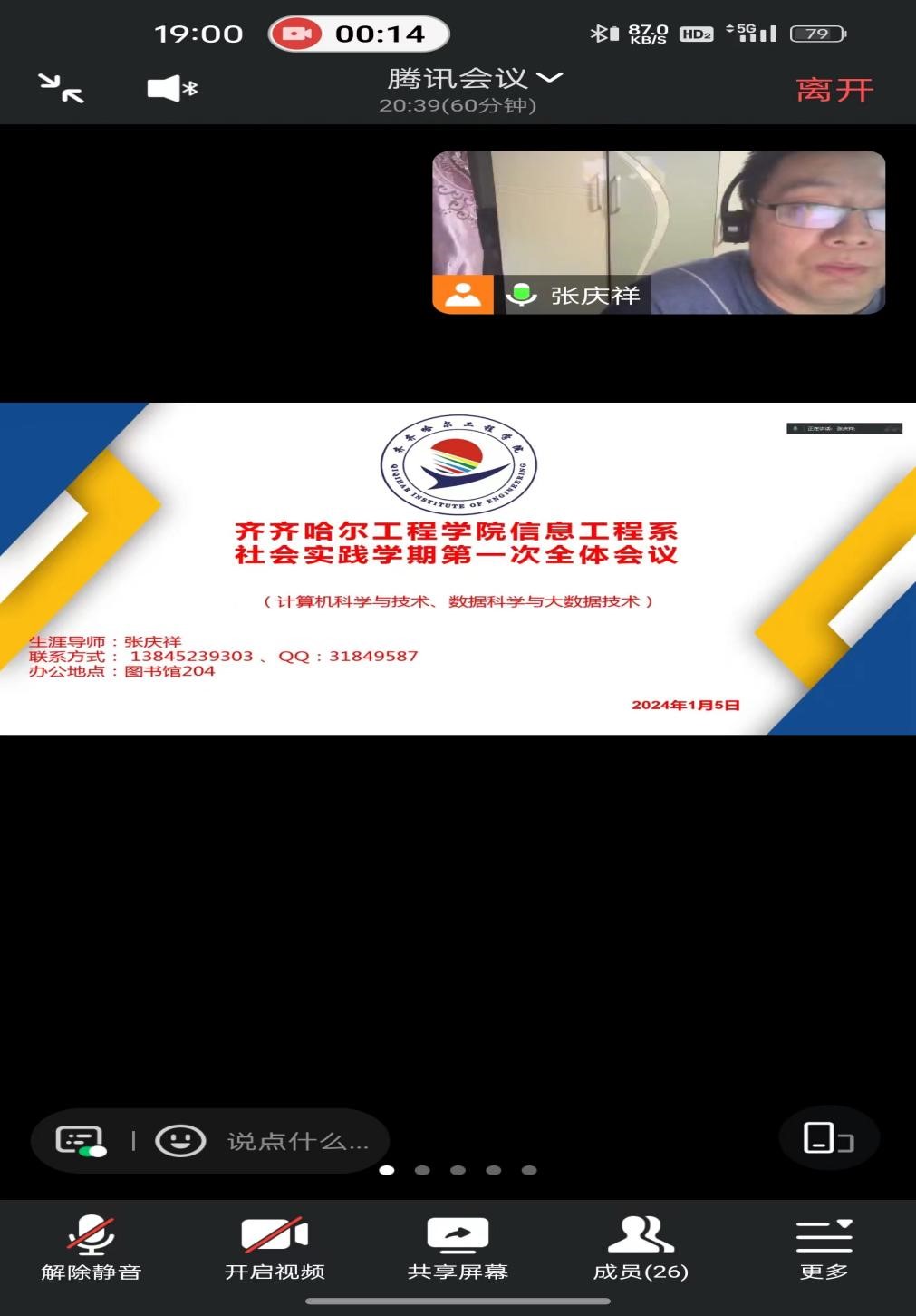 为了更好地完成2023—2024学年度第四学期工作,培养学生的社会实践能力,1月5日晚,信息工程系生涯导师张庆祥通过腾讯会议召开第四学期第一次全体会议。