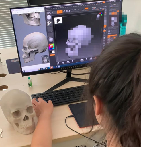 她的主要工作是配合设计师完成任务,搜集资料配合设计师与相关部门的衔接并完成上司留的测验,检验我们能力水平的测试。这一周就是关于头骨模型的测试,她积极向前辈请教空间结构以及比例关系问题是否正确,由于没有美术功底也需要在网上多下功夫学习,并且拿真实的模型不断观察、揣摩细节,根据前辈的建议指导进行修改,直至上司满意。