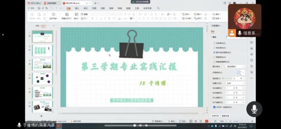 2023年7月23日,信息工程系动画201班召开线上专业实践学期周总结会议,本次会议由指导教师金子涵主持,全班同学参加了会议。