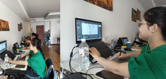 在这个实践学期的过程当中,公司的指导老师肖老师也经常跟她们进行沟通,告诉她们现阶段如何做才能有效提升自己的专业技能,讲解一些未接触到的新知识,比如动画的中割,它是一份新的画补帧的软件,利用中割绘画人物中间的补帧,让人物动起来。肖老师还关心她们的生活,让她们感受到了家一般的感觉。