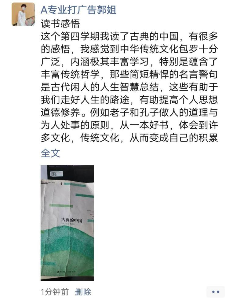 在这一周的时间里,本周字帖临摹的任务都已全部完成,小组成员已经把临摹字帖作为一种习惯,一直坚持书写。同时佟鑫老师也召开了第二次视频会议,小组开展了一次读书交流会,分享自己阅读的书籍,并且再次对如何完成第四学期进行了商讨。小组每个组员都在向更好的方向发展,齐心协力,一定能更好的完成学校安排的任务,更好的去提升自我。