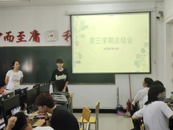 7月15日14时,计科213班在1#3203召开第三学期周汇报会。本次会议由第三学期指导老师郭伟伟主持,指导学长臧虎林和计科213班全体同学参加会议。