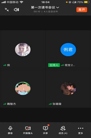 首先,韩俐君同学讲述了本次交流会目的是小组成员四人分别进行了一本好书的分享,并叙述了选择书籍的原因与其中的优秀片段。然后,韩俐君同学推荐书籍《平凡的世界》,就像书中所说的他们身处平凡的世界,却又不甘于平凡,便带着勇气与坚毅,踏上奋斗的历程;张璐璇同学介绍了鲁迅先生的《朝花夕拾》,记忆凝结成的文字,字句中都流淌着情感的汁液;魏智杰同学讲述了《三体》的故事,人的一生短暂而平凡,不管遇到什么都不过是尘世风景;姜雨梦同学推荐了《云边有个小卖部》,当我们追求某样东西的时候,就必须放弃另一样东西,这就是成长。最后,韩俐君同学提醒小组成员要将此次读书心得记录下来。