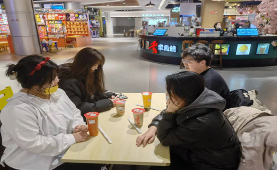 1月19日,董函硕小组成员约定时间,四人在商场的休闲区开展“以读书微光,探照生命之路”读书活动,由小组长董函硕主持,小组全体成员共同参加。