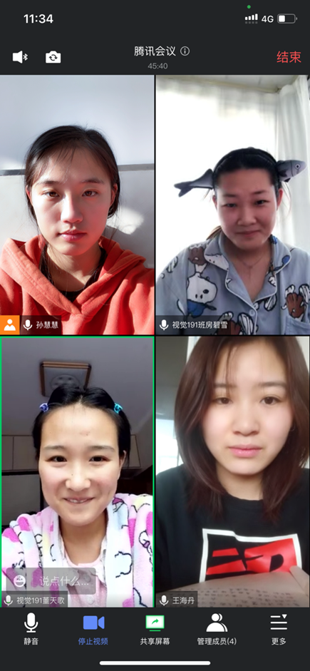 1月21日,孙慧慧小组通过线上腾讯会议的形式召开第一次读书交流分享会,由组长孙慧慧主持,团队成员房碧雪、董天歌和王海丹积极参与并分享。