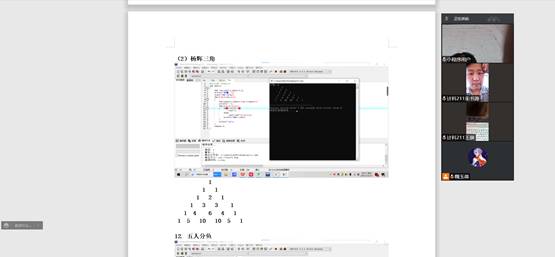 在这次活动中,我们通过腾讯会议进行了有关于C语言的相关学习活动,我们这一次将部分基础内容,及其他部分一些掌握并不熟练的知识进行了交流和互相讲解,并且对数组问题和杨辉三角进行了再学习,且对这些内容进行了部分延伸。