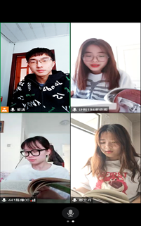 1月14日,小组组长计科192班梁涛和小组成员计科194班宋欣雨、计科192班那立丹、计科194班陈媛通过腾讯会议进行了读书交流活动,之后一起交流读书感悟。