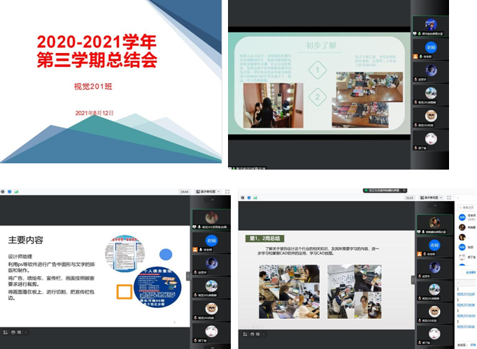 2021年8月12日下午,视觉201班班主任佟鑫老师利用腾讯会议组织召开2020-2021学年第三学期实习总结会,视觉201班全体同学参加。