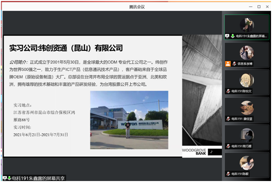 为了让同学们进一步了解第三学期的实习情况,确保第三学期教研工作的有效开展,2021年8月13日,电科191班通过网络开展了第三学期线上会议,本次会议由指导教师李博主持,电科191班全体成员参加。