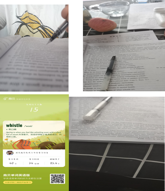 本次我们采取线上视频的方式,各个小组成员总结了做英语试题中的易错点,以及各自所认为的重点词汇,语法等。本周刘田粟同学和顾闯同学居家进行了四级英语题训练,刘田粟同学,总结汇报了做题中经常出现的知识点以及出现率较高的单词,并且向大家分享了自己的做题经验;顾闯同学向大家介绍了自己的学习经验。学习英语可以丰富我们的知识量提升我们的英语口语能力,提升沟通能力。邵思瑶同学通过背单词的软件,巩固英语知识,丰富词汇量,查缺补漏;邓一峰同学将不熟悉的单词记录下来,进行了反复学习。
