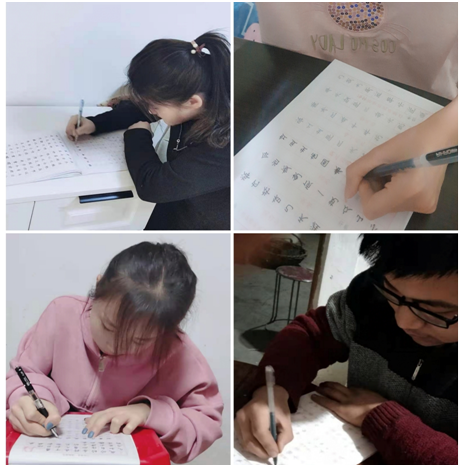 第四学期第二周,GY-102小组全体成员各自在家中开展了居家书写汉字活动。