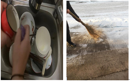 活动中,计科204班张钧博同学在大雪过后主动清扫自家门前的积雪,尽管外面很寒冷,积雪较多,但他依然克服困难完成了清扫任务,帮助父母减轻负担。临近春节,为了使家中焕然一新,各家都开始了大扫除。护理201班季欣宇同学主动承担起大扫除的任务。清除了家具上的灰尘,然后还把卫生间进行了消毒。并将杂物进行了规整。经过一上午的时间,将家中打扫的一尘不染,使家中变得很温馨。护理201班祝铭泽同学在饭后主动收拾餐桌,并承担起了洗餐具的任务。将餐具清洗的很干净,并整齐的放在了橱柜里。并且将厨房大清理了一下,将厨房里的油垢进行了清洁,使厨房变得井井有条,干干净净。计科201班程慧雯同学因为父母工作繁忙,主动承担起每天做家务的工作。让每天忙碌的父母可以有更多的时间去休息,父母也感到十分的欣慰。