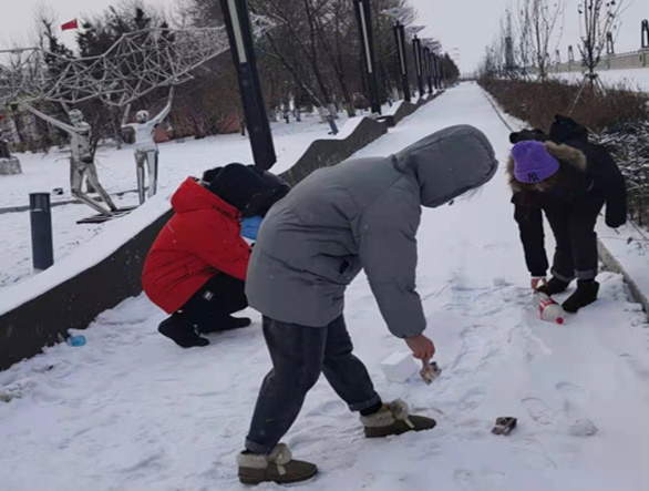 1月13日下午,信息工程系GY100小组全体成员来到了黑龙江省黑河市逊克县江畔公园进行第一次的公益活动——拾垃圾。