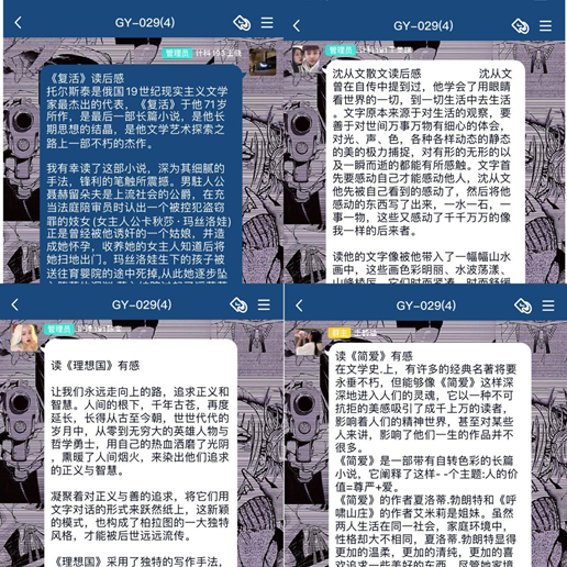 读书使人明智,读书使人高尚。读书是促进人成长发展的重要途经,学生的精神成长需要高品位阅读的滋养,学生的未来发展需要经典名著的引领,为了进一步提高学生文化素养,营造浓厚的学习氛围,1月16日下午,我们GY-029小组王骁,王美琪,王韵涵,陈实四名成员在线上进行读书交流活动。