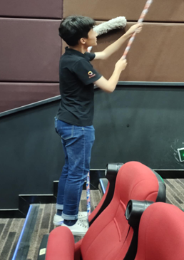 除了排版设计等工作,作为服务行业人员,我也学习到很多东西,对每位顾客的主动服务,为他们悉心讲解影院复工后的防疫新要求,每场在电影放映结束后,对影院做消毒处理,虽然累,但是工作也是未来生活的一部,每一段经历都是一种成长的过程。