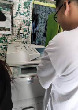 组长杨佳龙是负责维修和保养电子硬件,为外租打印机企业连接好打印机并调试,同时上门提供技术服务。在经过老员工的指导,他给我们分享了一下有关电子硬件的维护保养技巧。首先,不能开箱运行,打开机箱盖虽然可以让CPU凉快一点,可是这样负面影响很大,不是只有CPU才会散热。其次,不要拿电脑主机垫脚。最后不要把螺丝钉等导电体混入机箱,不让会导致机箱的板卡故障。
