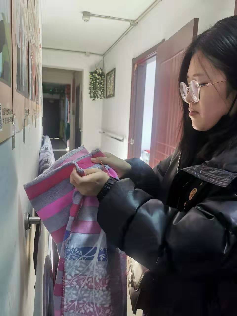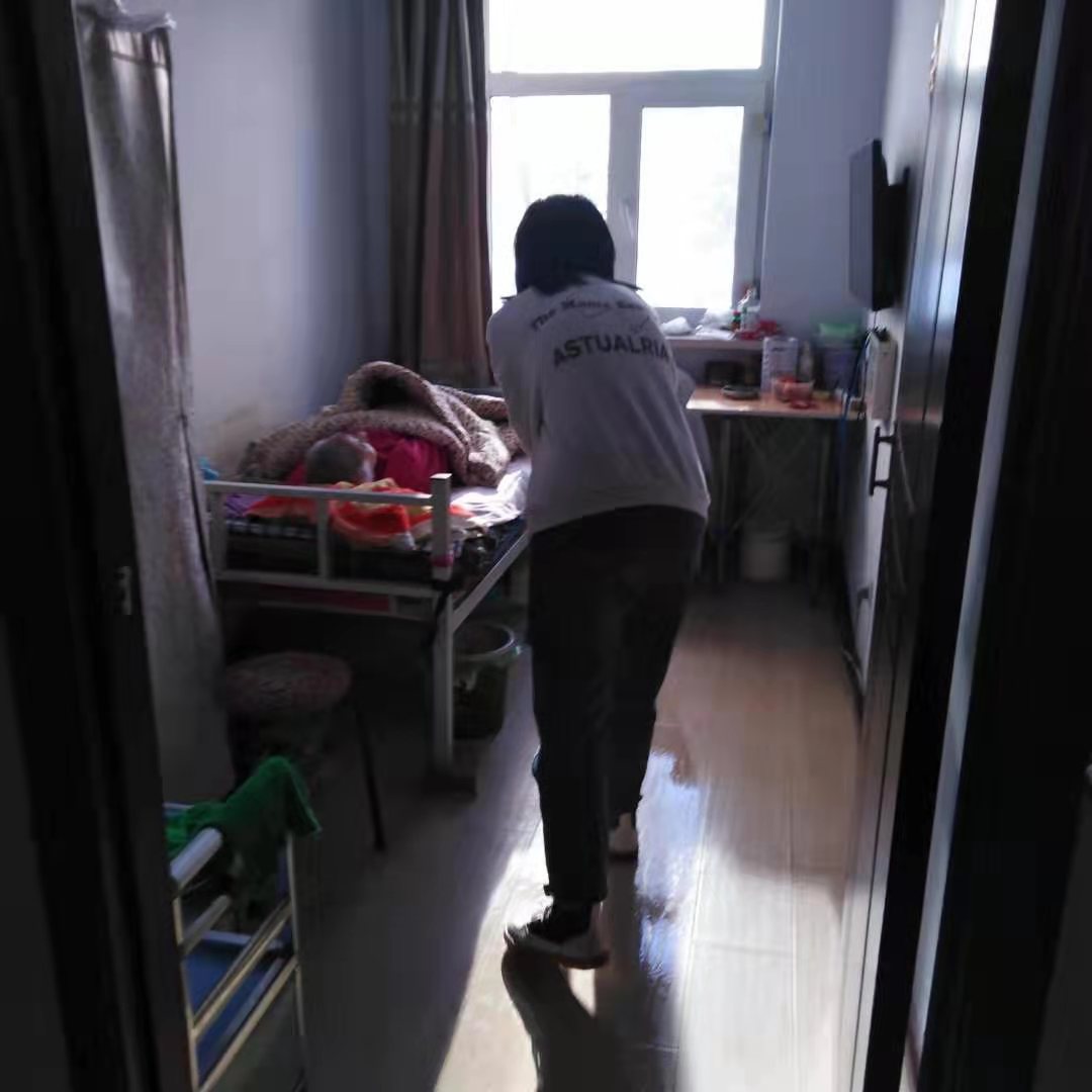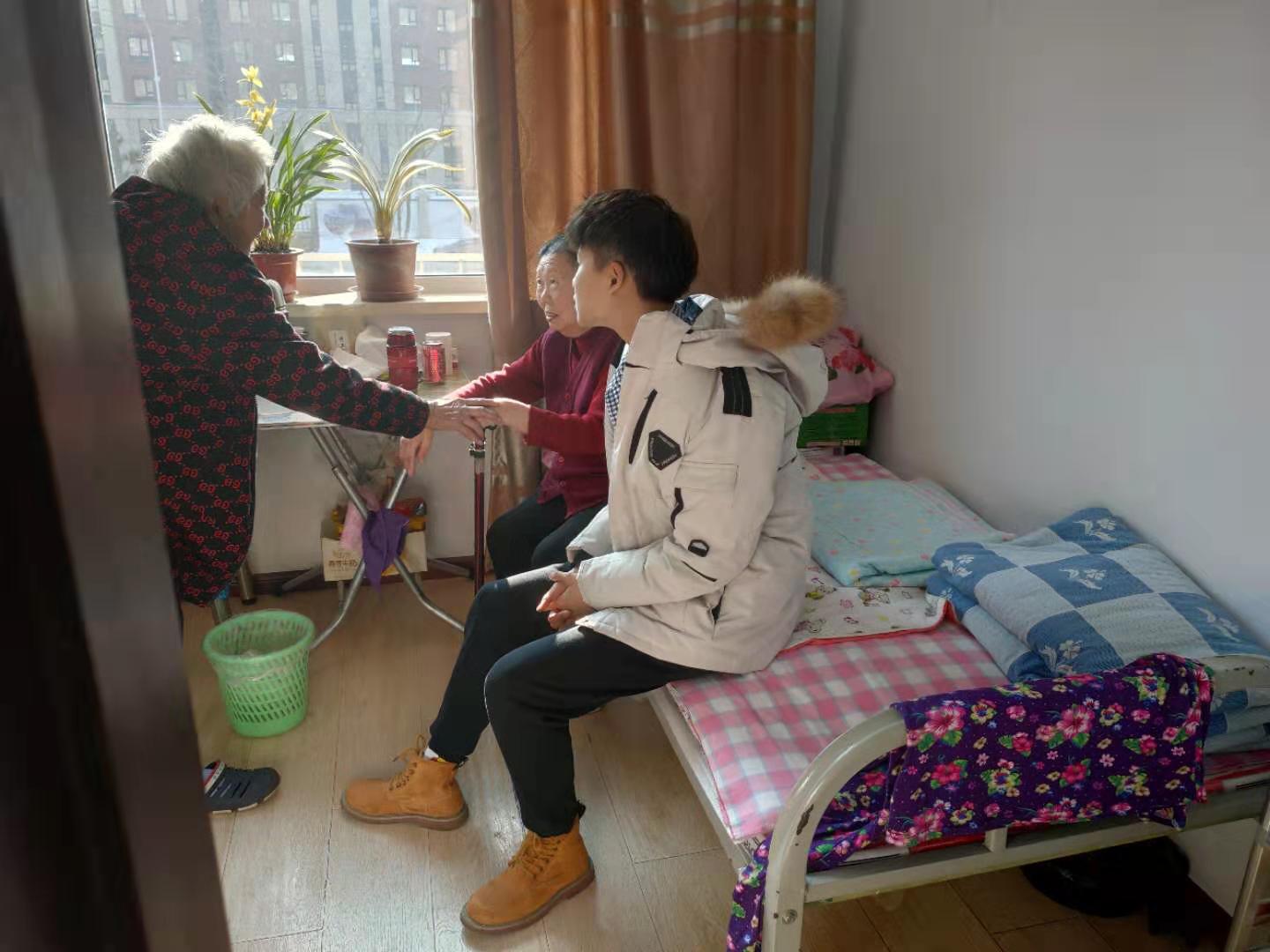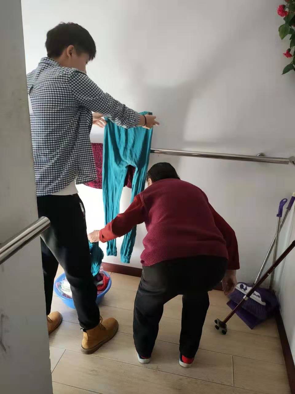 志愿者们分成了两个小组,前往不同的房间慰问不同的老人。起初在有些老人面前大家还显得很拘谨,但个别活跃性格开朗外向的学生十分热情带动了大家。有些老人患有老年痴呆症等等,志愿者们也耐着心和他们聊天,帮老人整理衣物,擦拭家具,听老人讲自己的过去,也与老人分享自己的校园生活,让这些在孤独中生活着的老人又一次露出了开心的笑容。