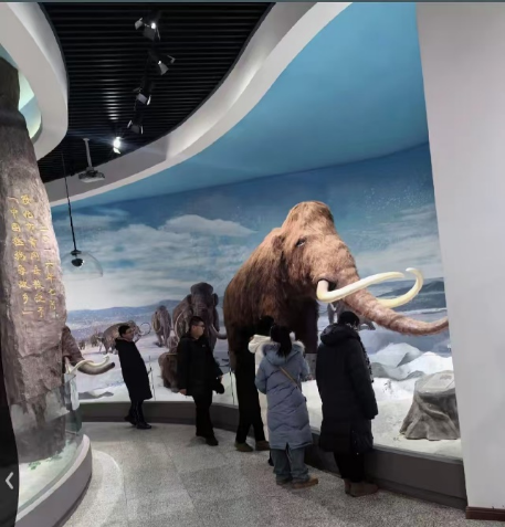 博物馆古生物化石展区,猛犸象、披毛犀等古生物化石骨架栩栩如生,仿佛重现远古生态。民俗文化展品则展现了当地传统生活风貌,各类文物、手工艺品等,为参观者讲述着绥化的历史与文化故事。