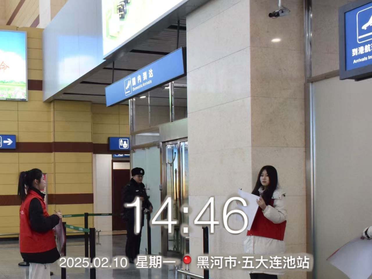 随后,志愿者们整装待发,清晨6点,天还未亮,五大连池车站已是人头攒动。身穿红色马甲的志愿者们早已各就各位,忙碌在车站的各个角落。他们有的在进站口协助安检,引导旅客有序进站;有的在候车大厅为旅客提供咨询、指引服务;有的帮助老弱病残孕等重点旅客搬运行李,护送他们顺利上车,一抹抹“志愿红”穿梭在人群中,成为春运期间车站一道靓丽的风景线。