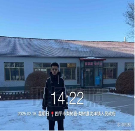 2025年2月16日,SHSJ-296组计科233班万鑫在吉林省梨树县沈阳镇社区进行社区扫雪志愿服务活动。