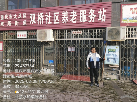 2025年2月8日下午,计科221班李宇函同学在区在重庆市大足区双路街道双桥社区养老服务站开展了社会实践学期的志愿活动。首先,李宇函同学通过与社区的联系,成功得到了在社区进行志愿活动的机会,为社区的清洁与整洁贡献了一份心力。