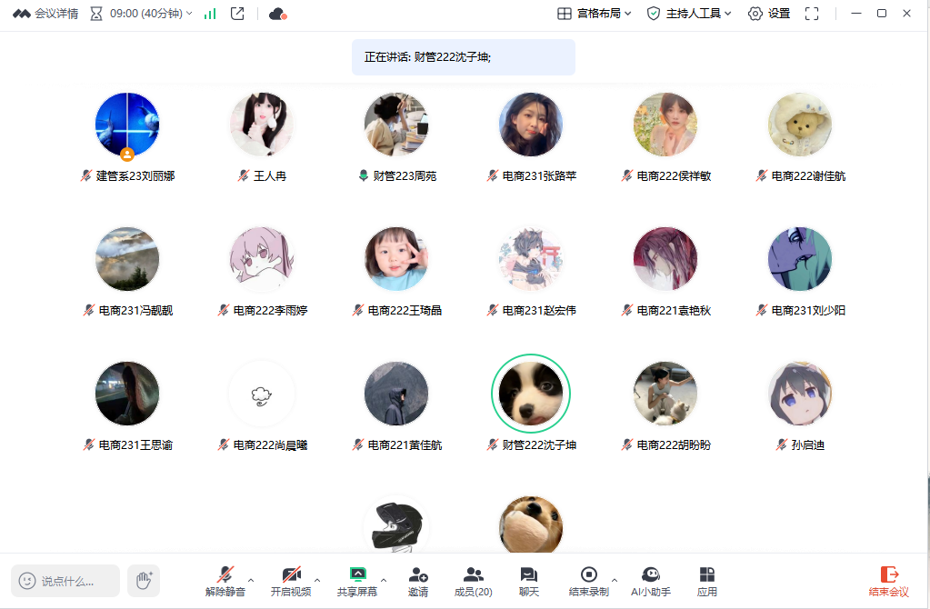 2月14日下午,刘丽娜老师在腾讯会议平台主持召开了“知航凌云”社会实践学期第六周的汇报工作会议。本次会议由张路苹同学担任主持,共有20人参加。
