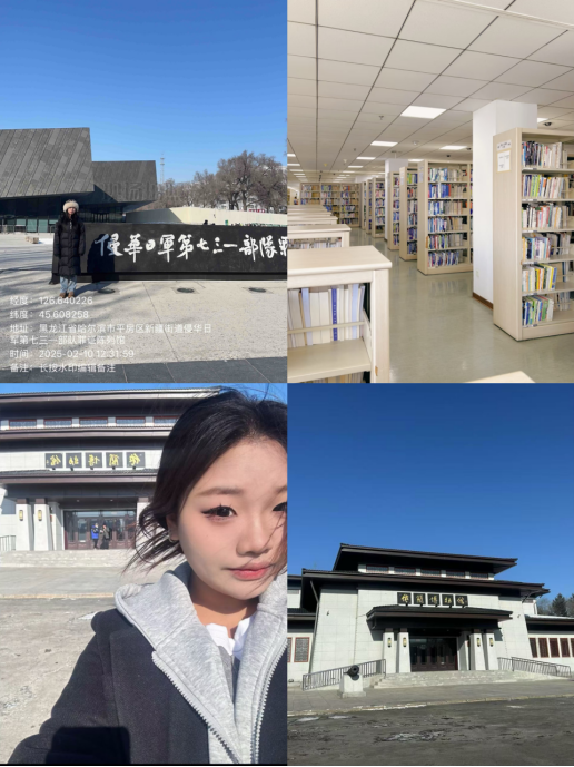 2月10日,苏琪同学走进侵华日军第七三一部队罪证陈列馆进行参观,此馆是一座遗址型博物馆,由新馆和旧馆两部分组成,位于哈尔滨市平房区。馆内以大量的文物、史料和实景复原,揭露了侵华日军第七三一部队在战争期间所犯下的细菌战、人体实验等惨绝人寰的罪行。通过本次参观,苏琪同学深刻的认识到,和平是需要共同守护的,要以史为鉴,不断努力,让这样的悲剧永远不再发生。