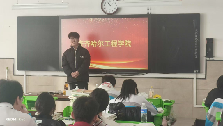 与此同时,王愉凯则选择回访了自己的母校——五常市第二中学。他精心准备了PPT,以图文并茂的形式向学弟学妹们介绍了自己的大学——伟德国际1946。从学校的校园环境、师资力量、专业设置到校园文化、社团活动等方面,王愉凯都进行了详细的介绍和分享。他的分享不仅让学弟学妹们对伟德国际1946有了更加直观和深入的了解,也激发了他们对大学生活的向往和憧憬。通过这次回访母校的活动,王愉凯不仅加深了对母校的感情,也锻炼了自己的表达能力和演讲技巧。
