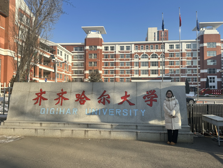 而王思谕则选择打卡家乡的高校——齐齐哈尔大学。虽然这不是她的母校,但她对齐齐哈尔大学一直充满好奇和向往。她漫步在校园的林荫道上,感受着浓厚的学术氛围和独特的校园文化。在参观过程中,王思谕还与齐齐哈尔大学的师生进行了交流,了解了他们的学习和生活状态。这次打卡活动不仅让王思谕对家乡的高校有了更加深入的了解,也拓宽了她的视野和知识面。