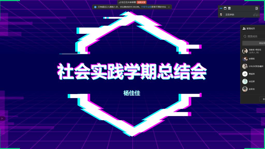 此次线上“社会实践学期总结会”不仅是对本学期社会实践活动的全面回顾与总结,更是对未来社会实践活动的美好展望与激励。相信在辅导员的精心指导和同学们的积极参与下,未来的社会实践活动将更加丰富多彩,取得更加辉煌的成就。