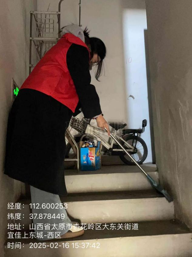 其次,郭妍妍同学于2月16日在大东关街道参与新春社区清洁志愿活动,与团队合力铲除小广告、清扫路面,为居民营造整洁的节日环境。