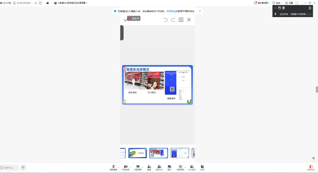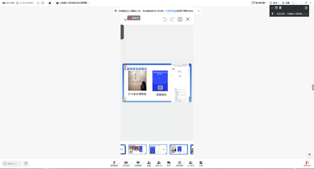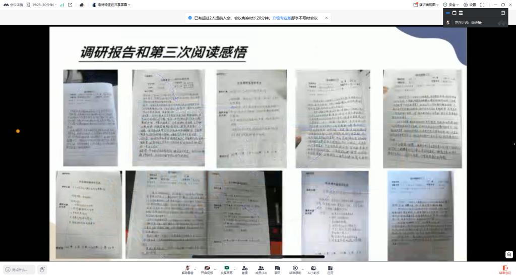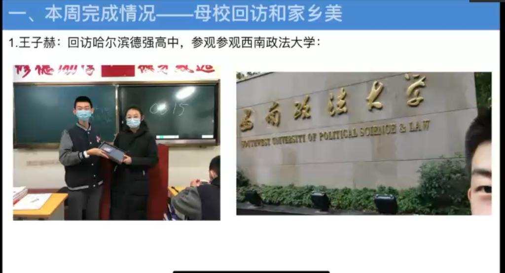 随后,作为郭伟伟生涯导师纵向班级的班长,孙晗哲同学进一步梳理了近期各项活动的完成情况,再次强调了返校后需要上交的社会实践学期的各项材料细节要求,并对整个社会实践学期各组表现进行了全面总结。