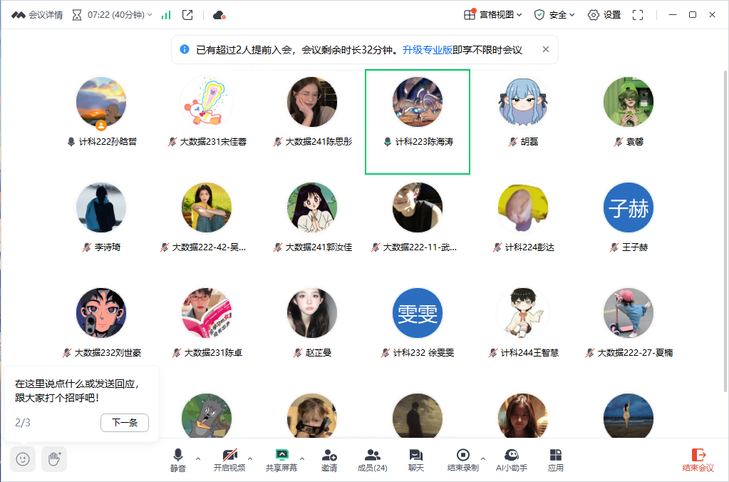 2月28日下午,生涯导师郭伟伟通过腾讯会议平台,召开了第四学期第六周总结会。本次会议由班长孙晗哲主持,25名学生参会。