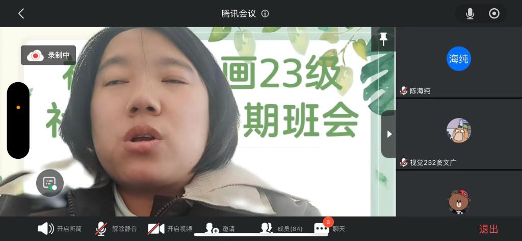 2025年2月10日下午,视觉、动画23级通过腾讯会议平台成功召开了社会实践学期班会。此次班会由辅导员刘阳老师主持,视觉、动画23级学生会负责组织,旨在为即将到来的社会实践活动做好充分准备,确保每位同学在实践过程中能够安全、顺利地完成任务。