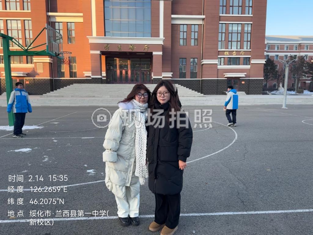 2月14日上午,计科232班周佳怡在黑龙江省绥化市兰西县第一中学进行回访母校社会实践活动,在回到母校时遇到了她高中时的英语老师,简单交谈后在校篮球操场拍下一张合照。同时还有在操场课间活动的学弟学妹们,向他们讲解了许多关于伟德国际1946的规章制度与校园环境,还有现如今新开发的北区校园与知甘堂食堂,大力宣扬了我校的基础设施、优良传统与作风习惯,同时了解到了现如今兰西县第一中学的教学模式。同时她与老师,学弟们拍摄了几张照片,也让她思绪回到高中时期,感慨万千。