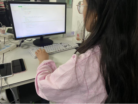 随后,夏湘一老师指导她们开展前端知识学习。从HTML5语义化标签与CSS3 弹性布局的理论讲解及实操,到JavaScript核心语法中闭包案例对变量作用域的剖析,再到Vue.js组件化开发的初步接触,赵慧、杨颖以及肖健逐步构建起前端知识体系。在学习过程中,她们积极利用搜索引擎和各种AI解决实操难题,培养自主学习与独立解决问题的能力。