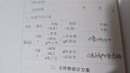 在本社会实践中,张子怡小组的全体成员完成了德育相关内容的学习在阅读学习环节,小组里的每位成员都结合自身的学习目标和兴趣方向,选定了不同的阅读书目,并且认真完成了阅读记录与心得撰写。大家从不同的书籍中汲取知识养分,有的聚焦电子商务专业理论,有的关注社会发展与人文素养,形成了各具特色的学习收获。除了阅读任务,小组成员还主动拓展实践内容。电商242班刘畅同学和电商231班张子怡同学写下了致未来的一封信,在信中梳理了自己的学习感悟,也对未来的职业发展和个人成长做出了清晰展望。电商241班李雨欣同学则积极投身志愿服务,主动报名参与相关活动,在奉献中锻炼了自身的实践能力和社会责任感。为了进一步将专业知识与行业实际相结合,电商251班王艺博同学已经初步在与和一家取得联系,希望争取能够进入企业开展实地采访,为实践调研收集一手资料。