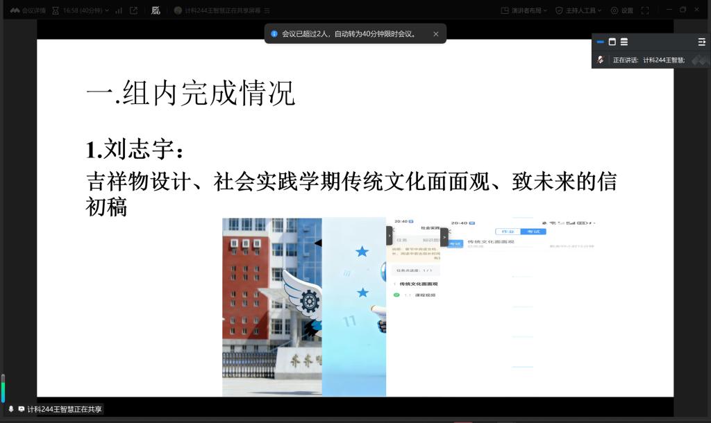 2026年1月16日晚,指导教师郭伟伟召开社会实践学期第二周指导会议,会议通过腾讯会议线上召开。目前,社会实践学期已顺利推进至第二周,为进一步校准实践方向、强化团队协作效能,指导教师郭伟伟针对各小组本周实践成果开展复盘指导,并部署下周重点任务,SHSHJ-034实践小组全员参与会议。