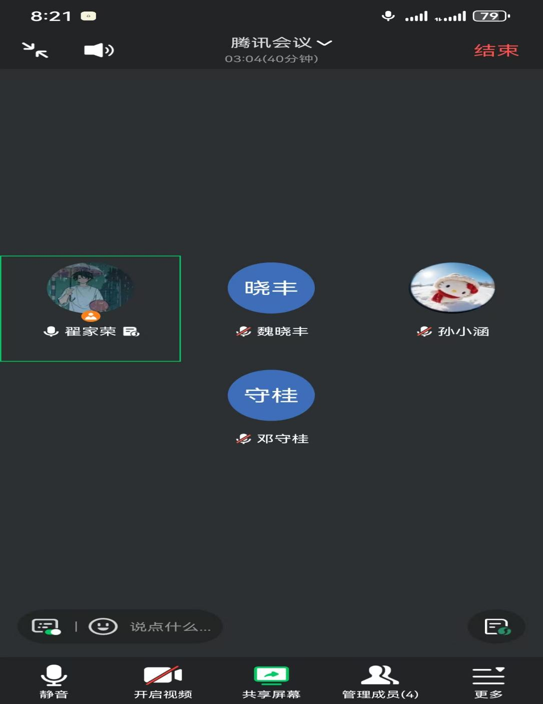 1月11日晚上,翟家荣小组在腾讯会议平台召开第一周社会实践心得分享会议,首先由组长翟家荣说明本次会议的目的,着重强调第一周实践是整个社会实践的基础阶段,复盘初期问题、统一协作思路对后续工作至关重要,引导组员结合自身参与的实践环节,分享第一周的实际体验与遇到的阻碍。