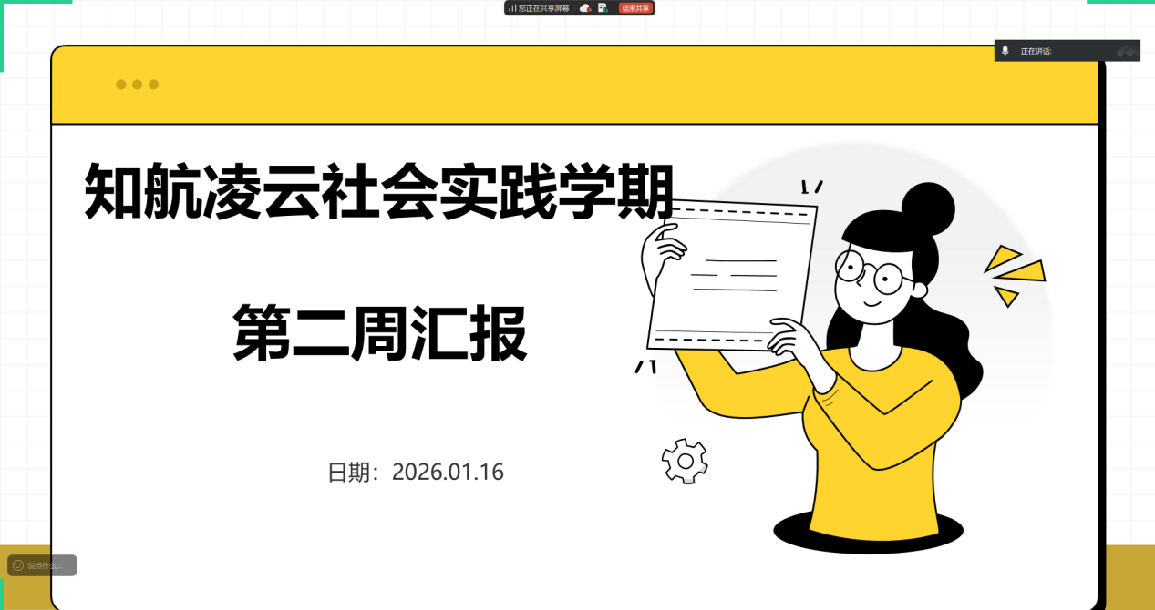 首先,会议进入实践项目汇报环节。与会同学依次借助PPT载体,直观呈现各自的实践成果,着重汇报过去一周的实践项目推进情况,并围绕实践过程中的具体实施细节、遇到的难点问题,与在场同学展开深入交流与探讨。